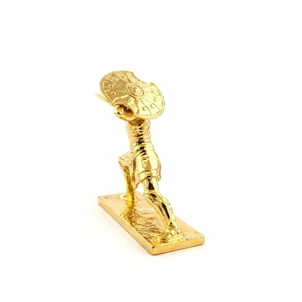 The Gold Achilles statue captures the essence of a legendary warrior in a rare moment of poise and power. Hand-poured in radiant 24K pure gold and finished with an antique gold touch, this masterpiece merges ancient heroism with modern craftsmanship. Achilles, famed for his unmatched valor in Greek mythology, is rendered here with lifelike intensity—from the sculpted armor to the firm grip of his shield and spear, every detail honors the mythic legacy of the Trojan War’s fiercest champion.