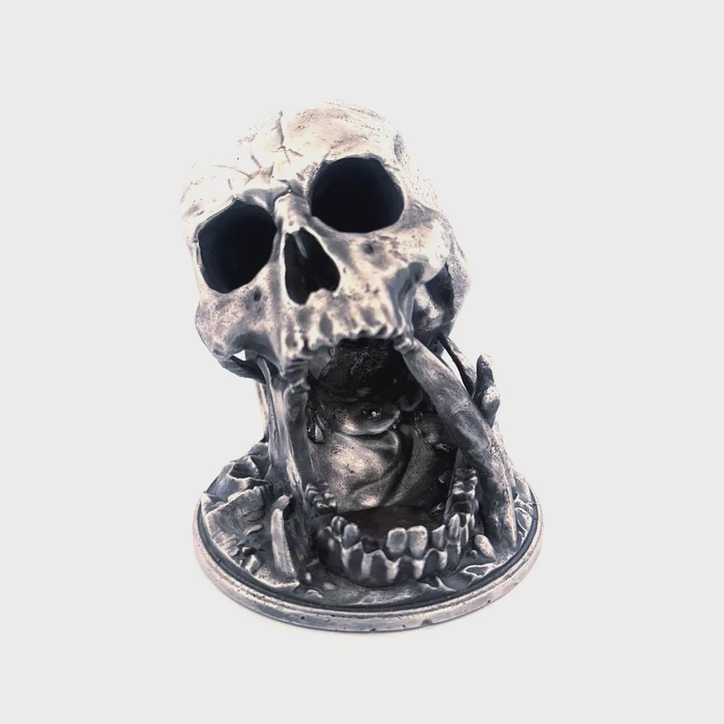 The Skull Cave silver statue evokes the thrill of exploration and the allure of hidden treasures, hand-poured in 999+ pure silver and finished with an antique polish that highlights every jagged rock, deep crevice, and haunting skull detail. This handcrafted silver statue captures the perfect balance of danger and intrigue, making it a captivating silver collectible for adventurers, storytellers, and lovers of the mysterious.