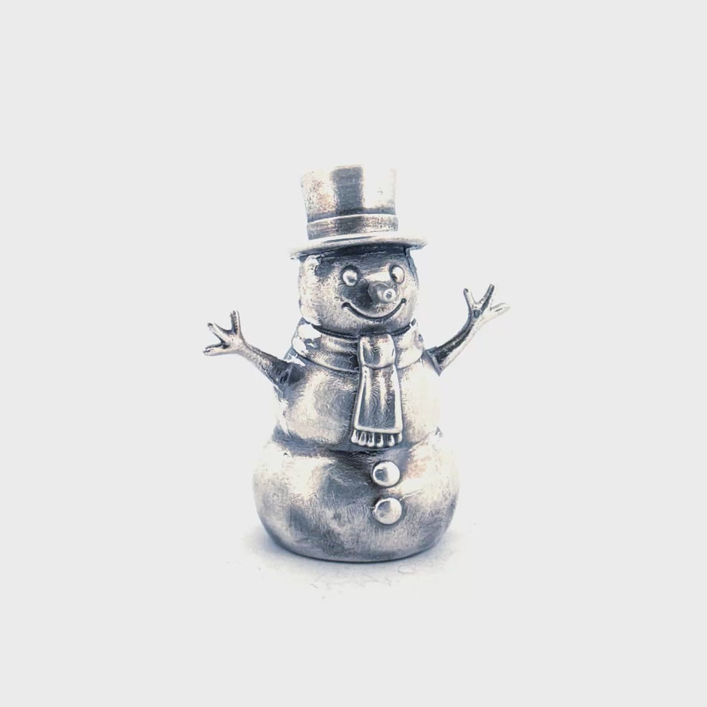 Celebrate the warmth of winter with the Snowman — a charming handcrafted silver statue made from 999+ pure silver. This delightful silver figurine captures the joyful spirit of the season with a plump, smiling snowman wrapped in a cozy scarf and topped with a classic top hat. From the texture of his snowy form to the details of his carrot nose and button eyes, every element is brought to life through skilled artisan casting and finished with a soft antique patina that adds nostalgic charm.