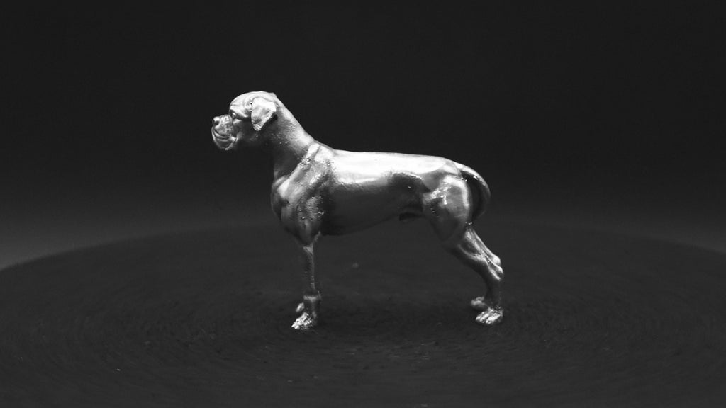 As a fine silver statue and artisan made silver sculpture, the Boxer combines lifelike artistry with heirloom-quality craftsmanship. Whether showcased in a curated silver art collection or given as a silver collectible for gifting, it’s a meaningful piece that celebrates the deep bond between humans and their canine companions.