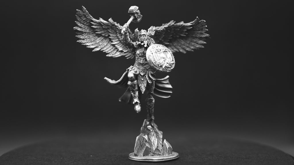 Advanced Craftsmanship – Created using vacuum-assisted investment casting and 3D-printed casting resin, ensuring breathtaking detail in the Valkyrie’s armor, sword, and celestial wings.